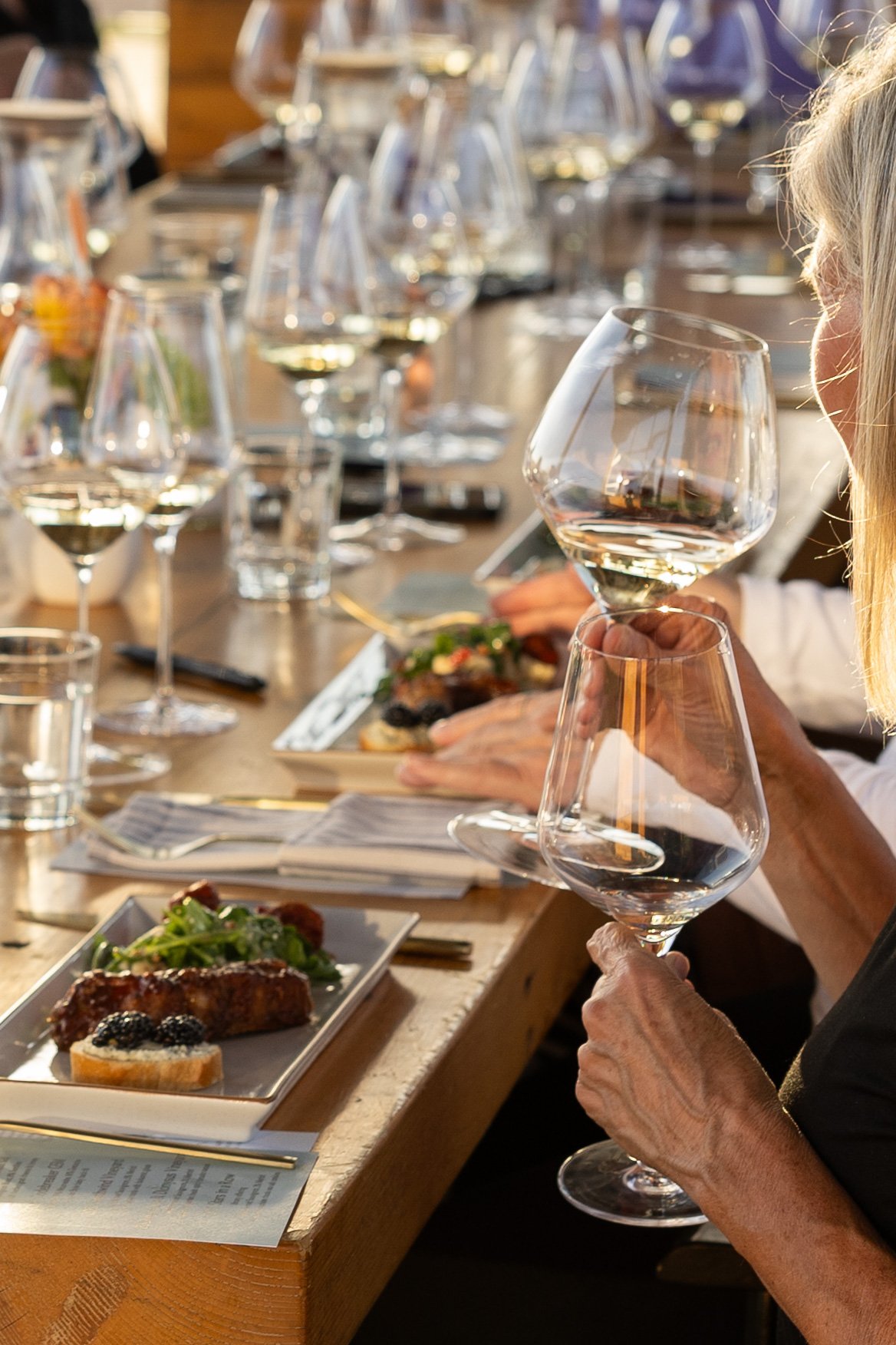 A feast for the senses featuring fresh Dungeness crab, perfectly paired wines, and breathtaking views at Sagemoor's iconic Glass House—an unforgettable end-of-summer gathering filled with great food and good company.